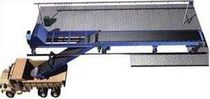 水泥裝車機(jī)由平形膠帶機(jī)、卸袋機(jī)構(gòu)、端部溜槽等組成。平形膠帶機(jī)的支架采用鋼板折彎結(jié)構(gòu),即美觀又牢固;驅(qū)動(dòng)裝置采用擺線針輪減速機(jī),節(jié)省占地面積;張緊方式為中間垂直卸下時(shí),立式膠帶機(jī)處于包裝膠帶機(jī)的側(cè)邊;當(dāng)需要水泥袋從中間位置卸下時(shí),由電動(dòng)推桿拉動(dòng)立 式膠帶機(jī)使其擺動(dòng)與包裝膠帶機(jī)縱向成交叉位置,并開動(dòng)立式膠帶機(jī)即可。立式膠帶機(jī)的兩個(gè)擺動(dòng)極限位置限位開關(guān),其在工作和非工作狀態(tài)下的定位由限位開關(guān)來實(shí)現(xiàn)。特殊設(shè)計(jì)的溜槽能使水泥袋恰好落到接續(xù)膠帶機(jī)的中心位置。